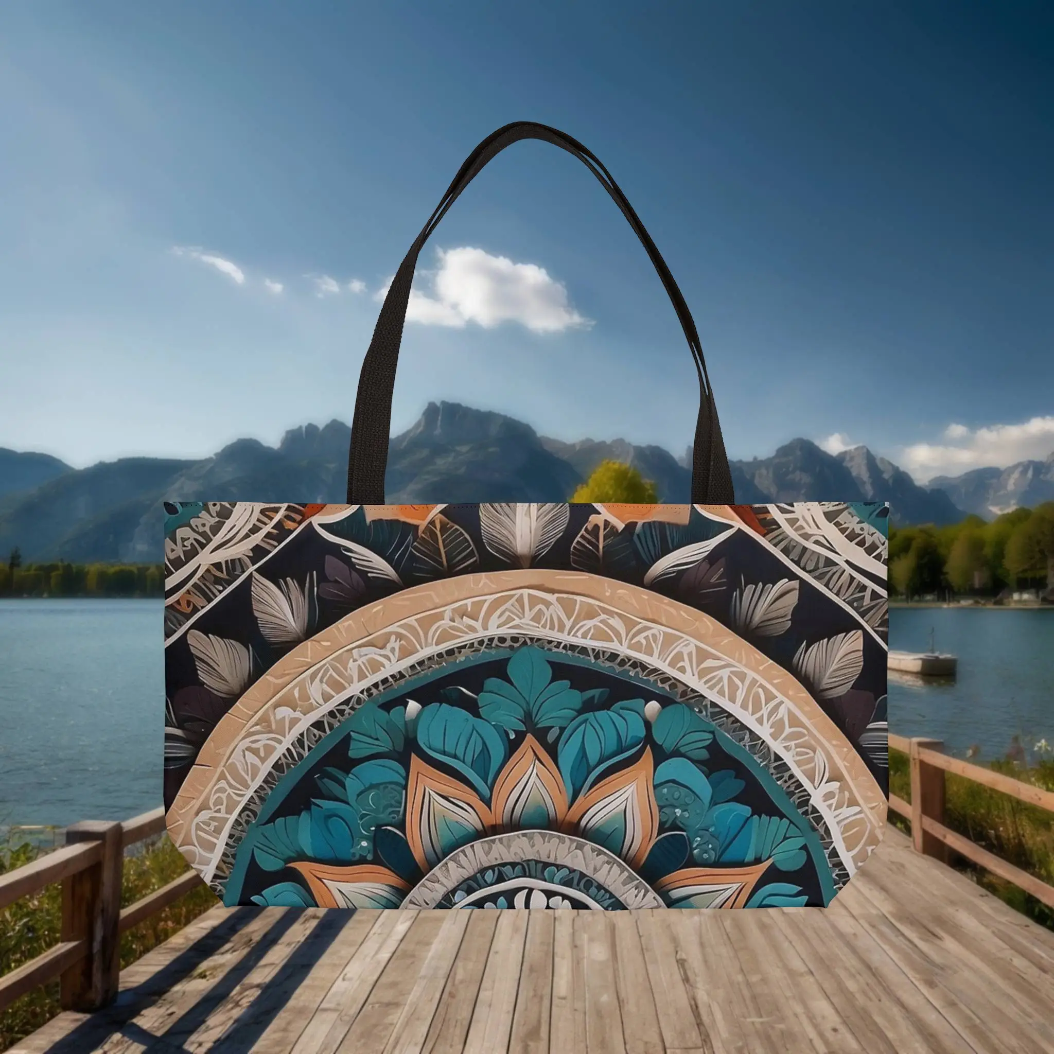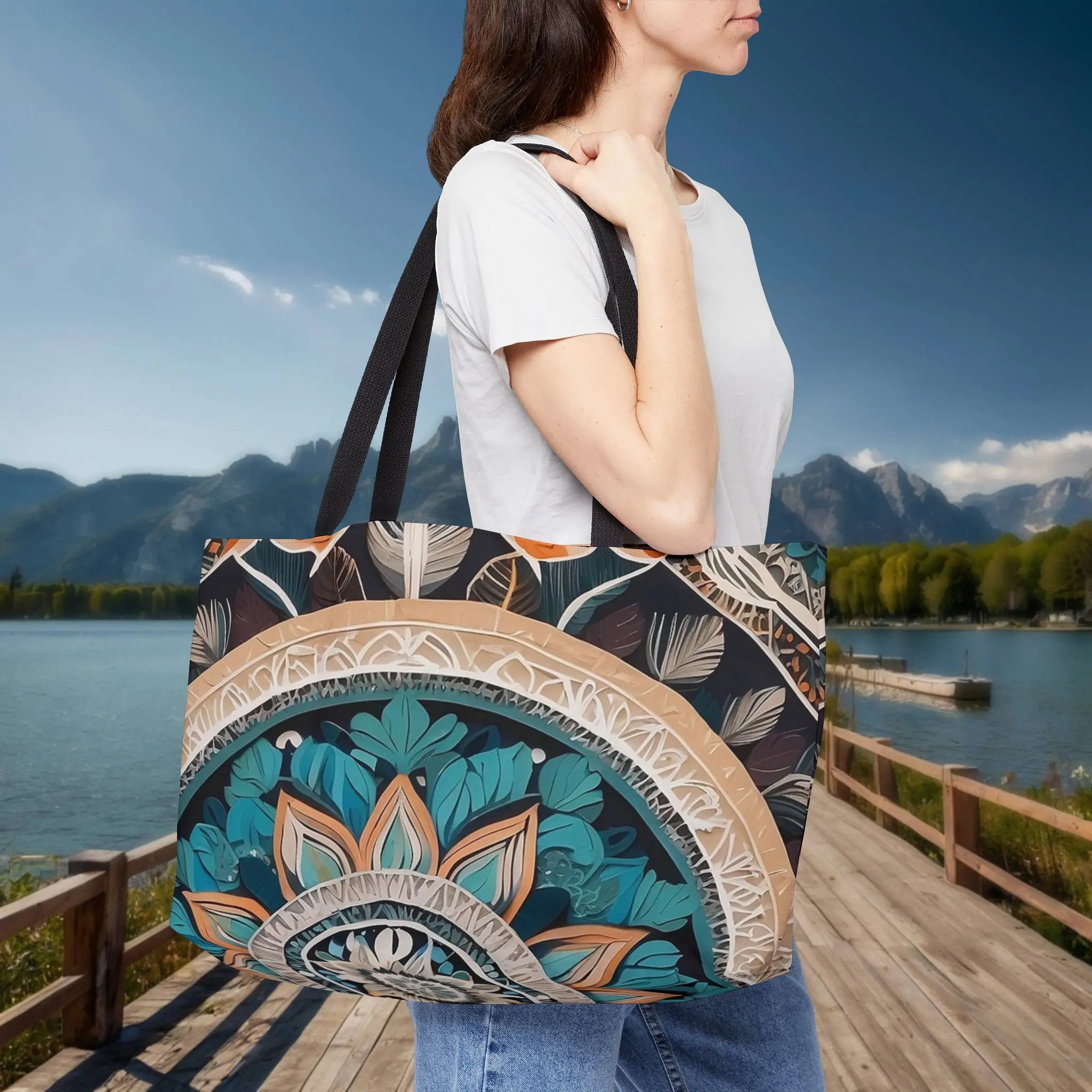 Eye-catching mandala print tote bag, perfect for weekend escapes