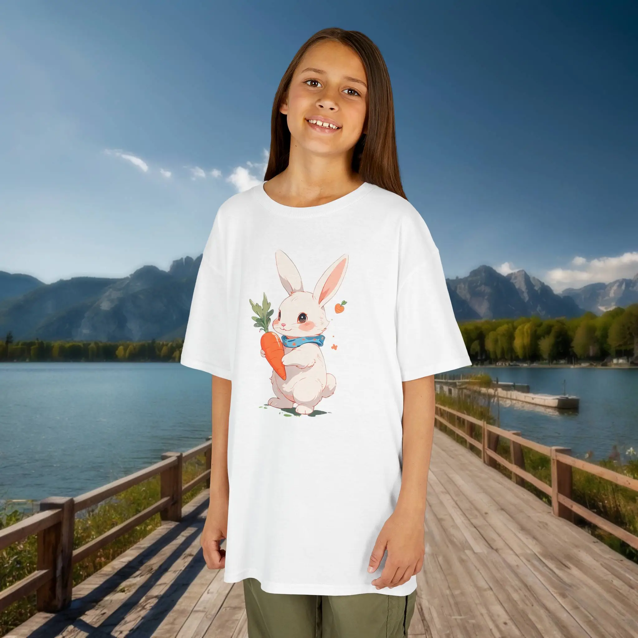Let your child’s personality shine with this charming Kids Heavy Cotton™ Tee. Featuring an adorable bunny holding a carrot, this tee brings a playful vibe to any outfit. It’s crafted to provide comfort and durability, making it an excellent choice for both active play and relaxed days.