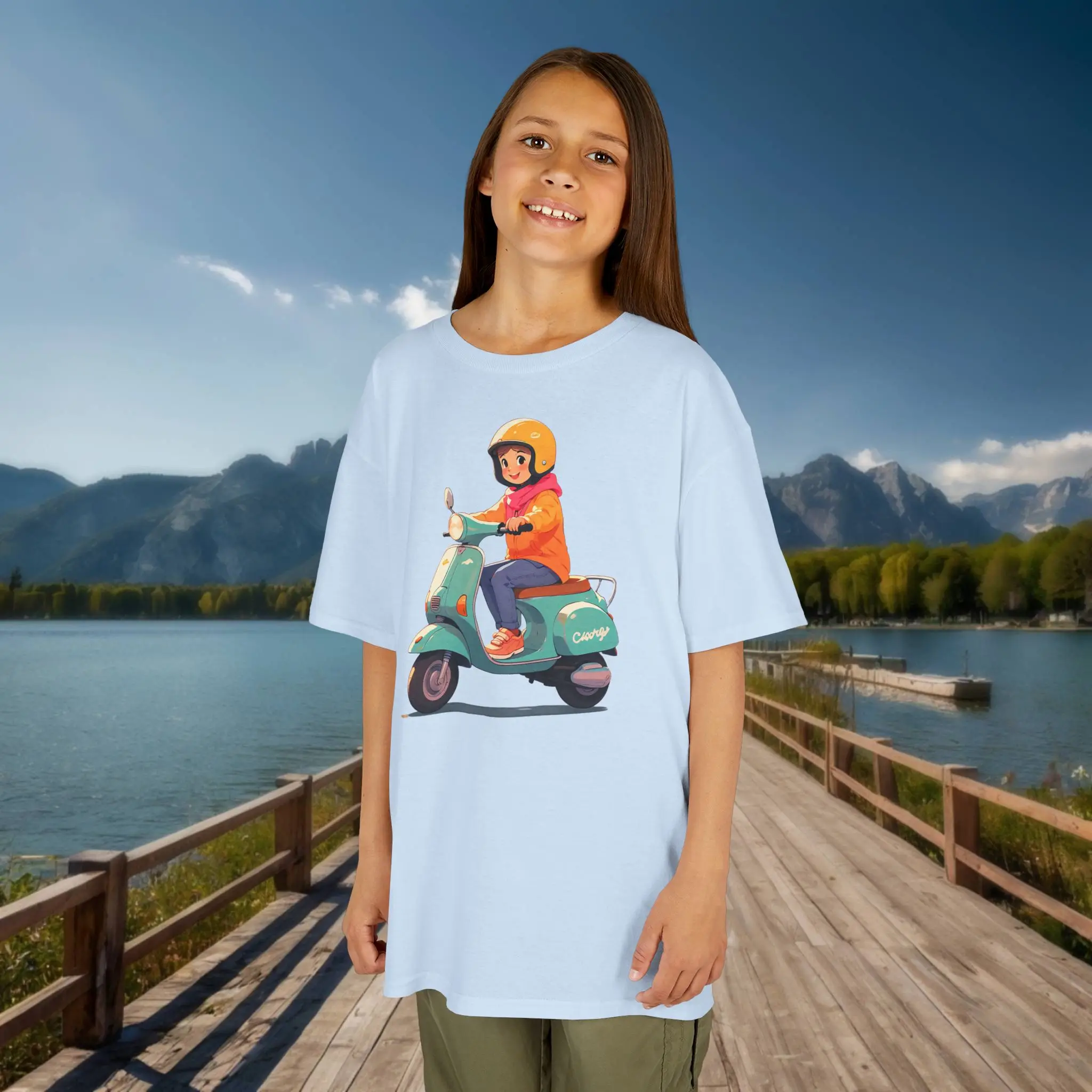 This Kids Heavy Cotton™ Tee is versatile enough for any occasion. Whether your child is heading to school, spending the day at the park, or just hanging out at home, this tee is the perfect choice. The scooter design pairs easily with any outfit, making it a practical and stylish option for everyday wear.