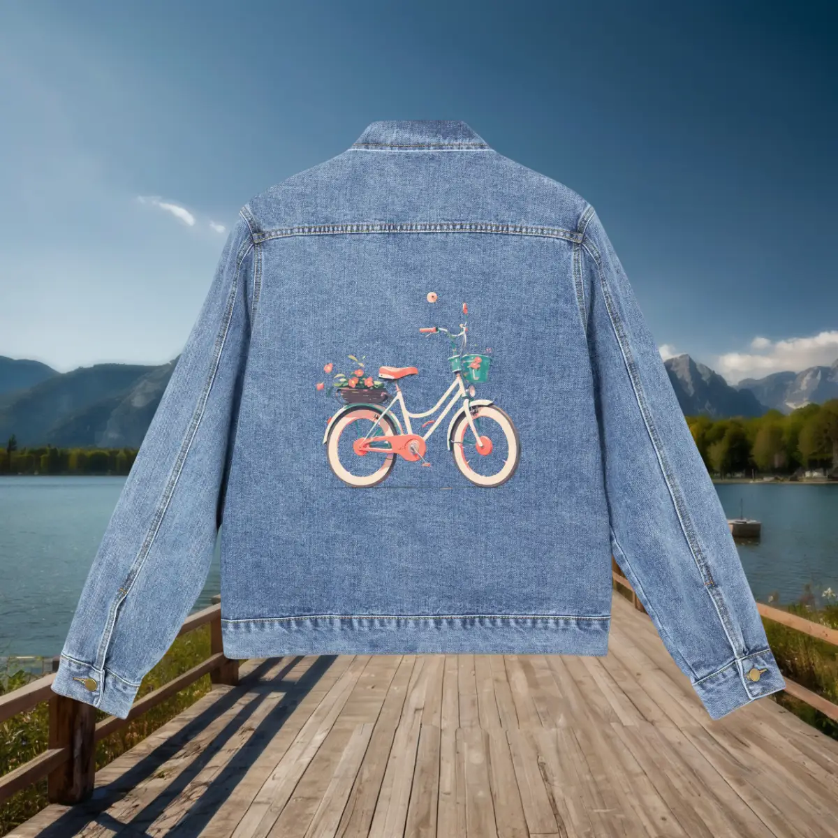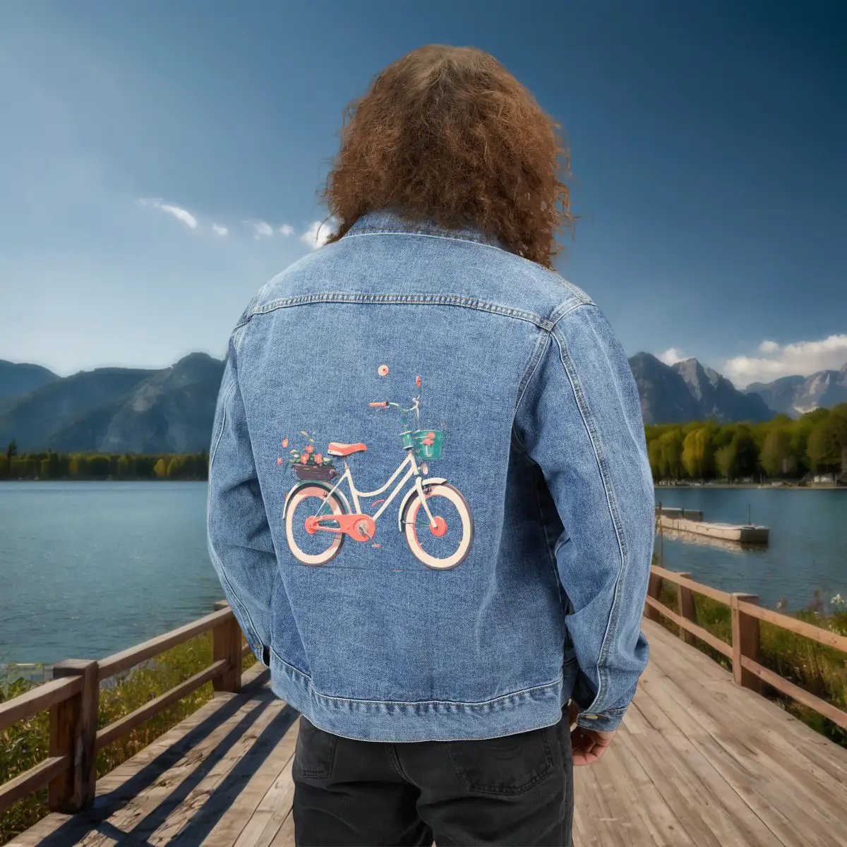Caring for this jacket is straightforward. The high-quality denim is easy to maintain, ensuring that the vibrant bicycle design stays fresh even after multiple washes. Simply follow the care instructions to keep your jacket looking new.