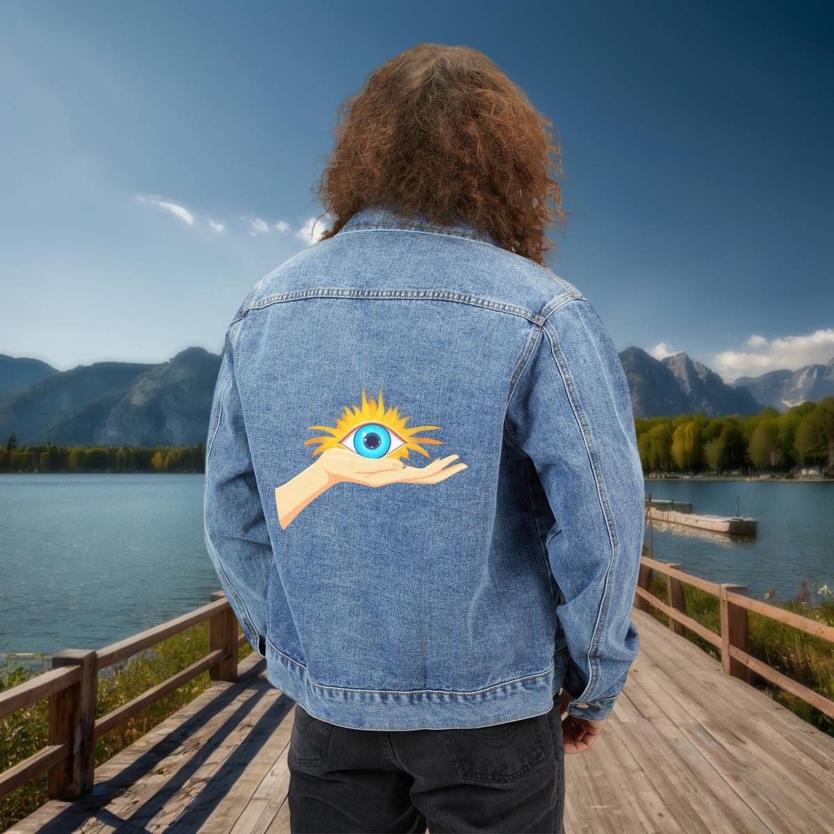 Elevate your wardrobe with the unique and stylish Men’s Denim Jacket from Exyashop. This jacket effortlessly combines comfort and fashion, making it an essential piece for any trendsetter. Featuring a captivating mystic hand design on the back, it brings a touch of spiritual charm to your ensemble.
