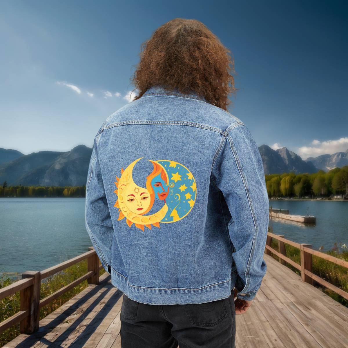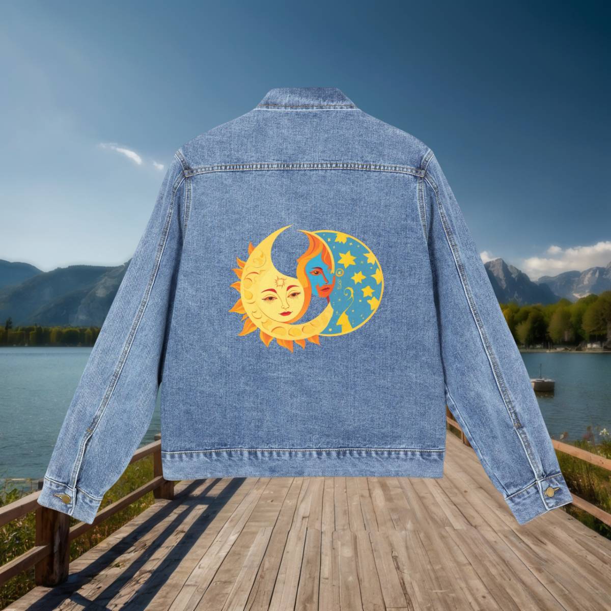 Elevate your wardrobe with the unique and stylish Men’s Denim Jacket from Exyashop. This jacket seamlessly combines comfort and fashion, making it an essential piece for any trendsetter. Featuring a captivating sun and moon design on the back, it brings a touch of celestial charm to your ensemble.