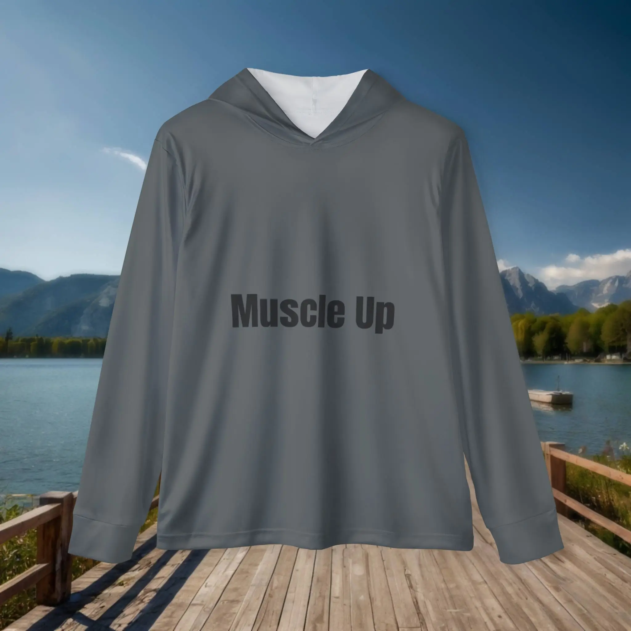 Level up your training with the “Muscle Up” men’s sports warmup hoodie. Designed for power and performance, this lightweight hoodie keeps you cool and dry during intense sessions thanks to its breathable, moisture-wicking fabric.