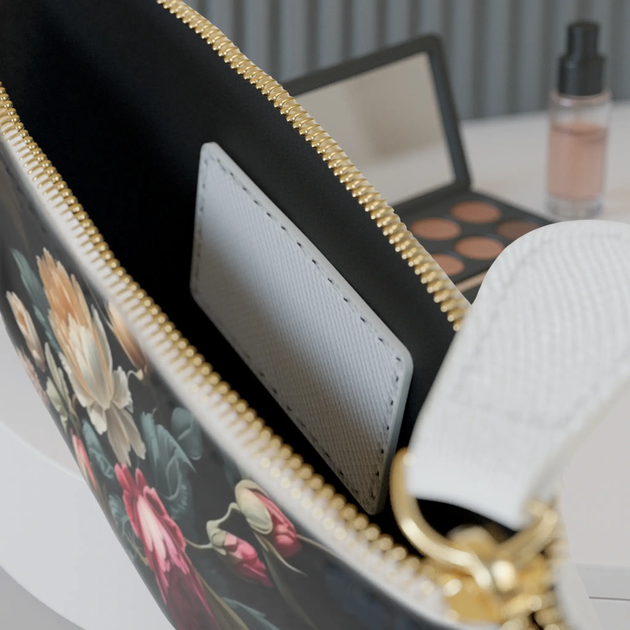 Introducing the Mini Clutch Bag from ExyaShop, featuring a timeless floral design. This exquisite pattern showcases vibrant flowers set against a dark, elegant background, capturing the beauty and sophistication of vintage botanical art. Perfect for any occasion, this clutch bag brings a touch of floral elegance to your accessory collection.