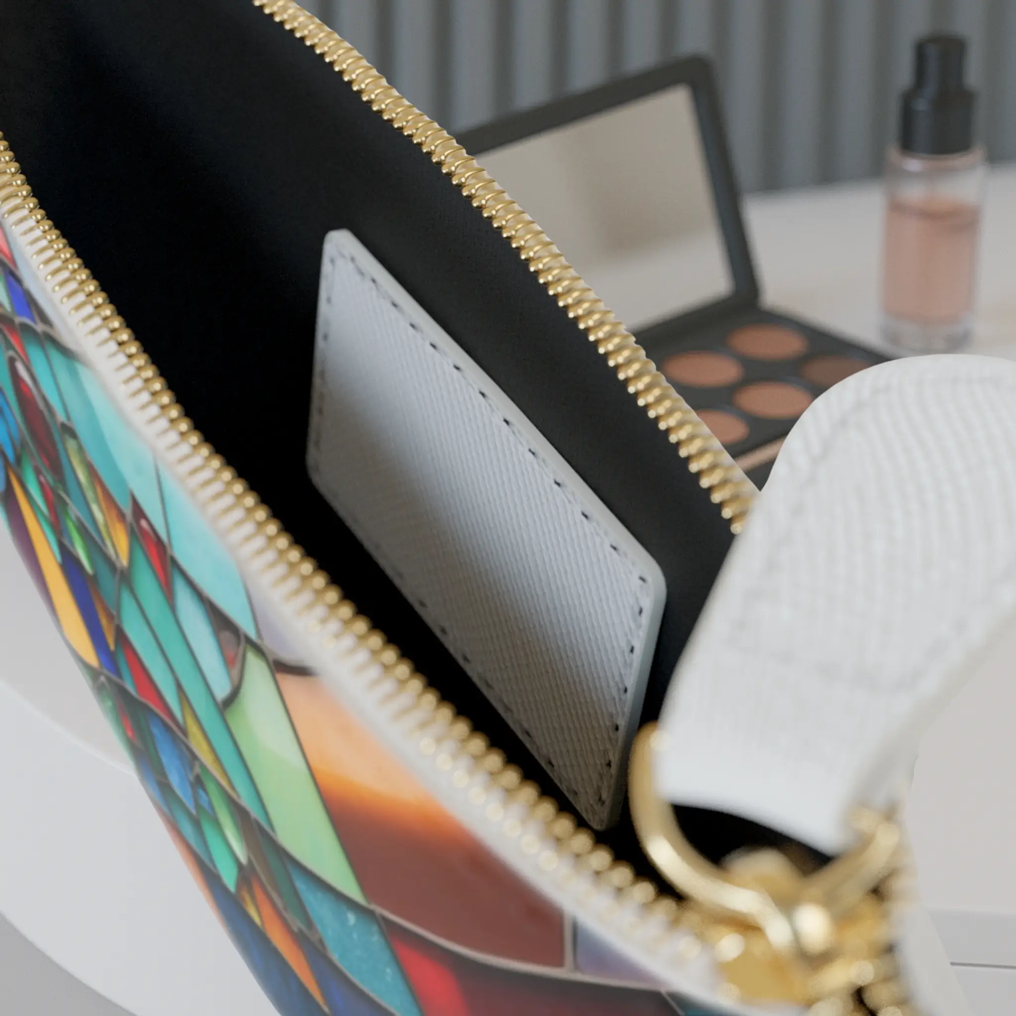 Discover the artistic elegance of the Stained Glass Clutch Bag from exyaShop. This exquisite accessory features a stunning stained glass pattern, reminiscent of timeless church windows and classic art pieces. The vibrant, colorful design brings a sophisticated and artistic flair to your outfit.