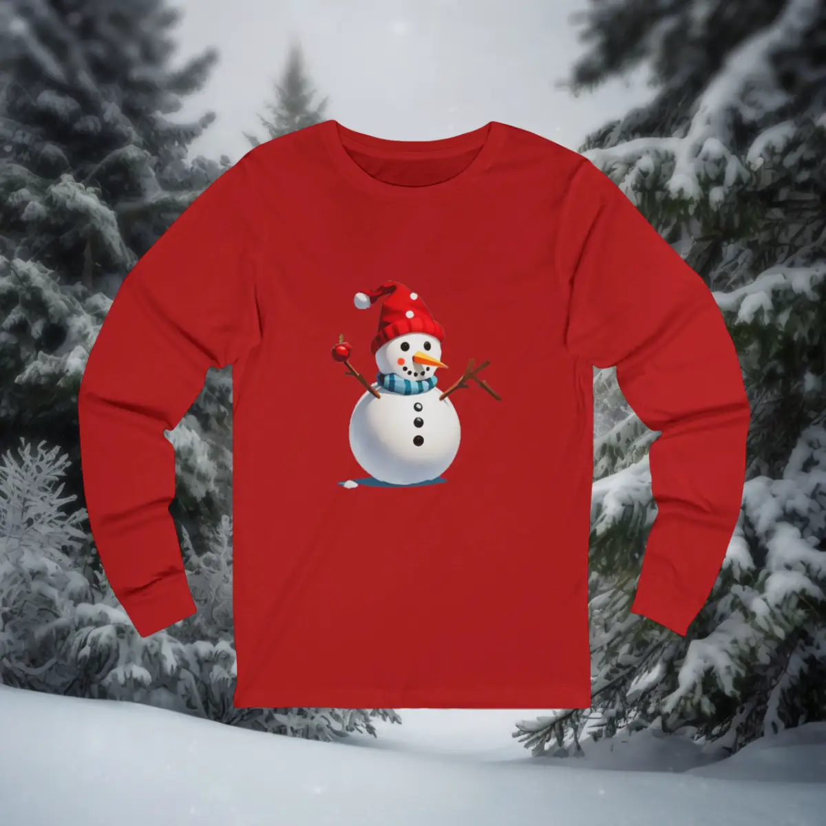 Stay warm while showcasing your love for winter with this cozy long sleeve shirt. The cheerful snowman design brings joy to every occasion, whether you’re at a holiday party or enjoying a winter stroll.
