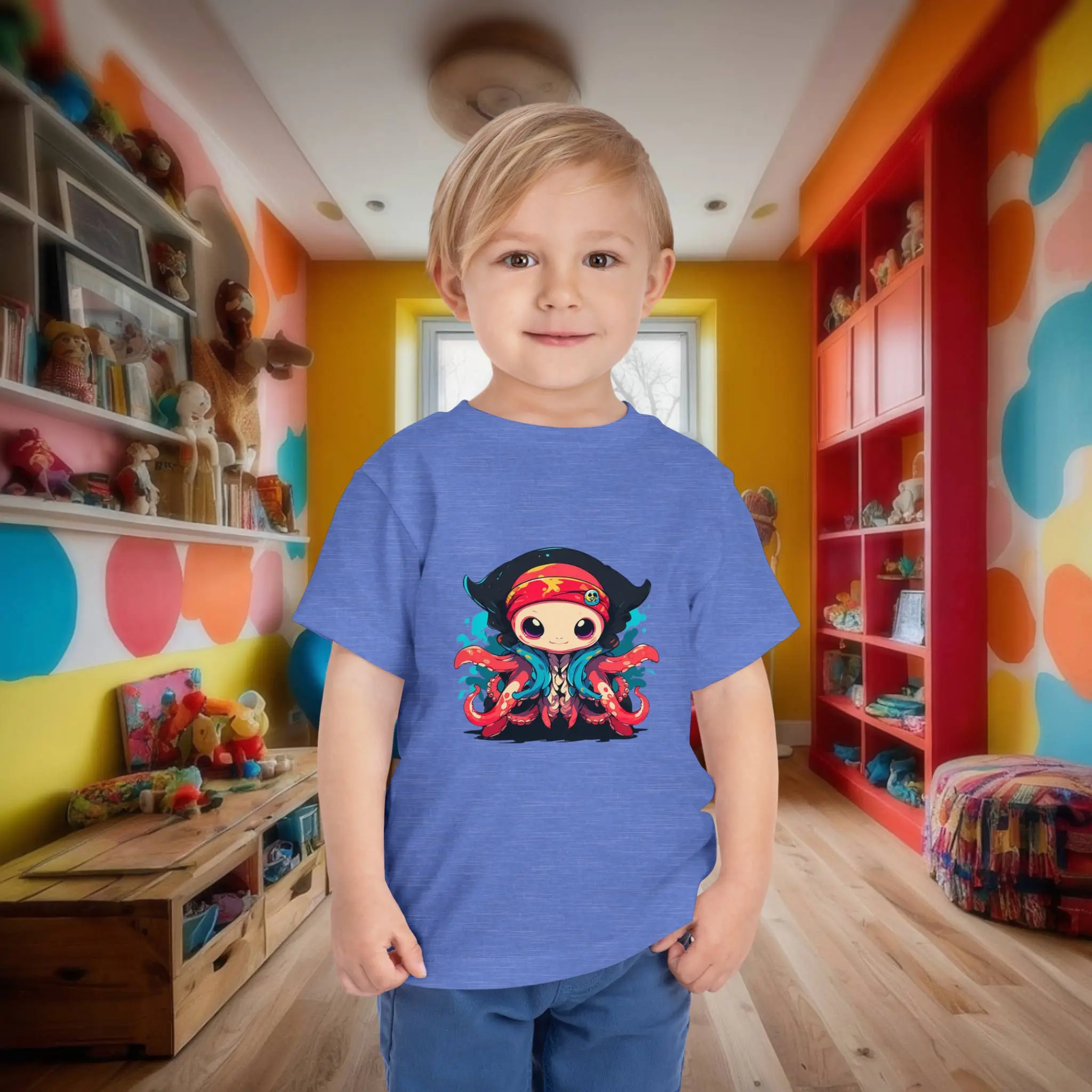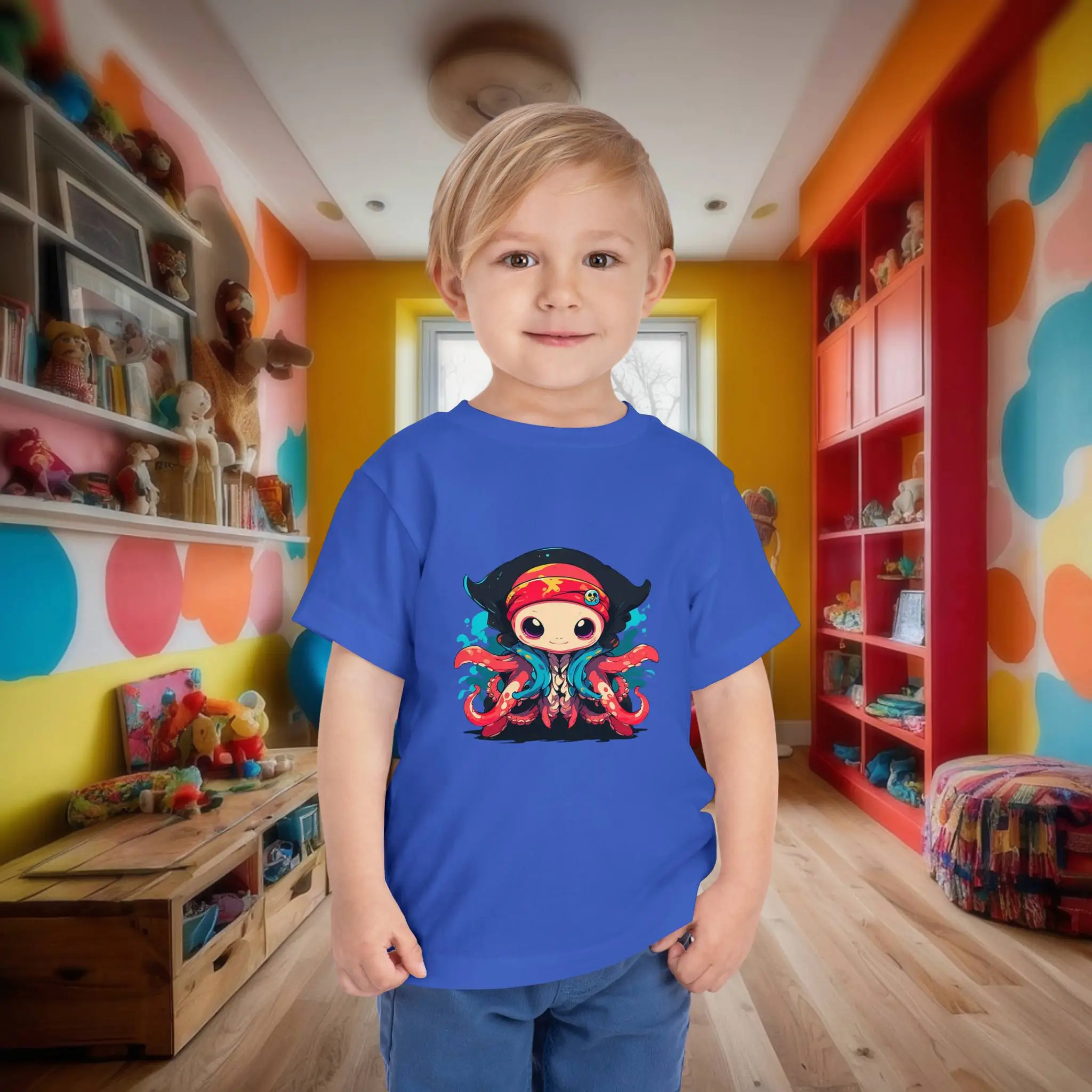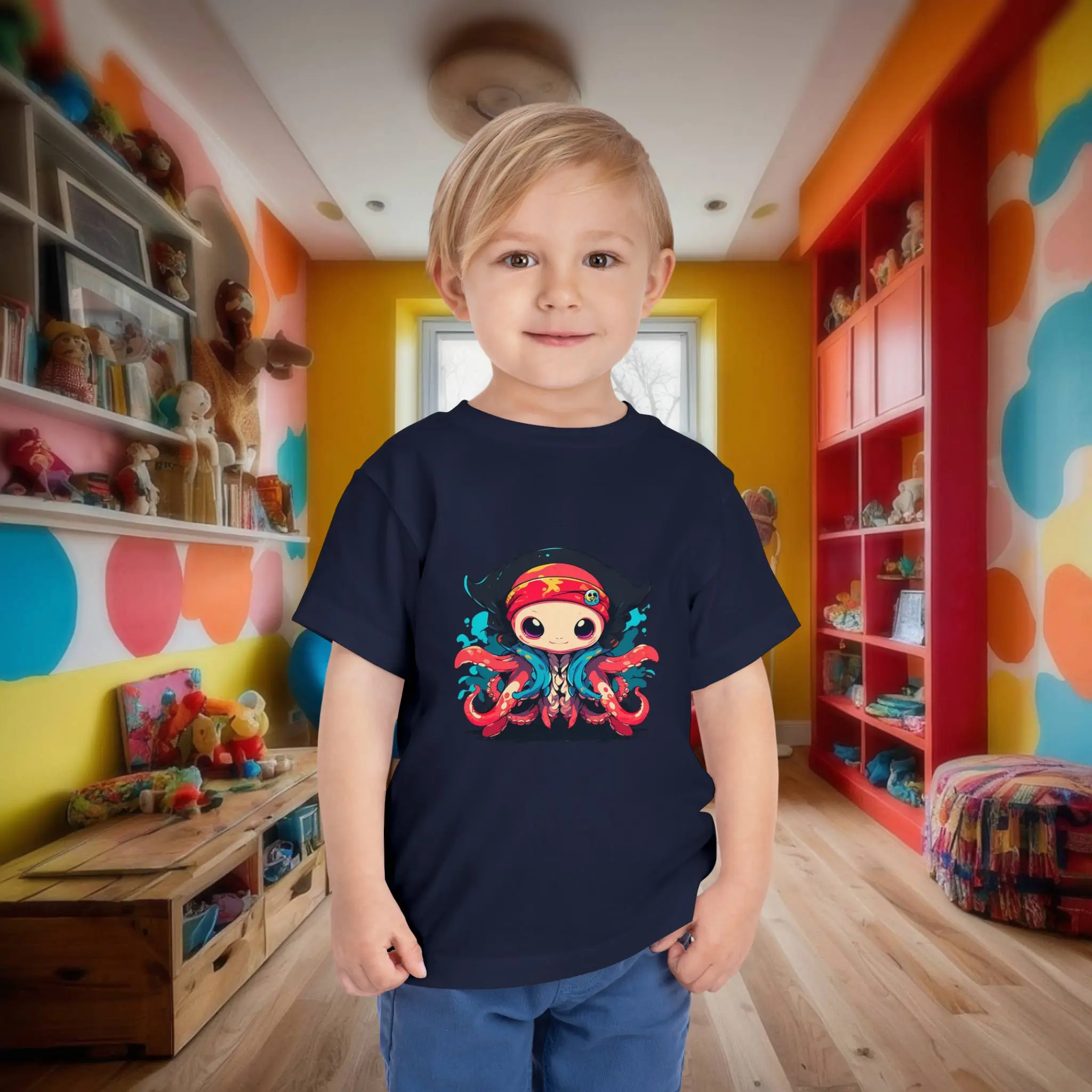 Ideal for a variety of activities, the pirate octopus toddler tee is perfect for playdates, family outings, or casual wear at home. Its versatile design pairs effortlessly with jeans, shorts, or leggings, making it a practical addition to any toddler’s wardrobe.
