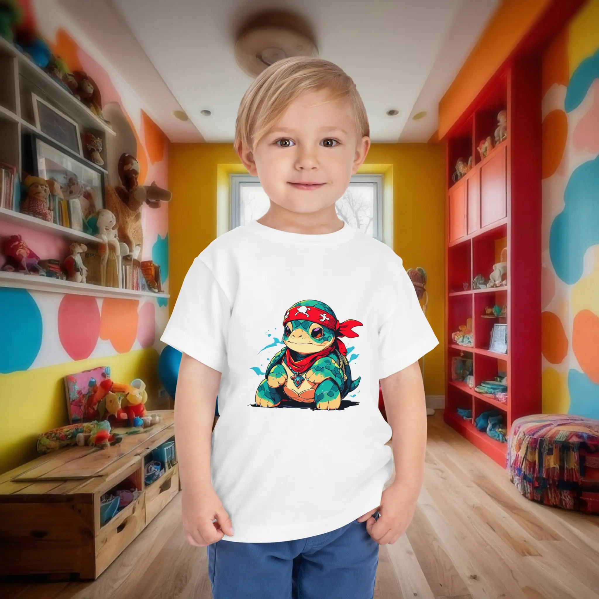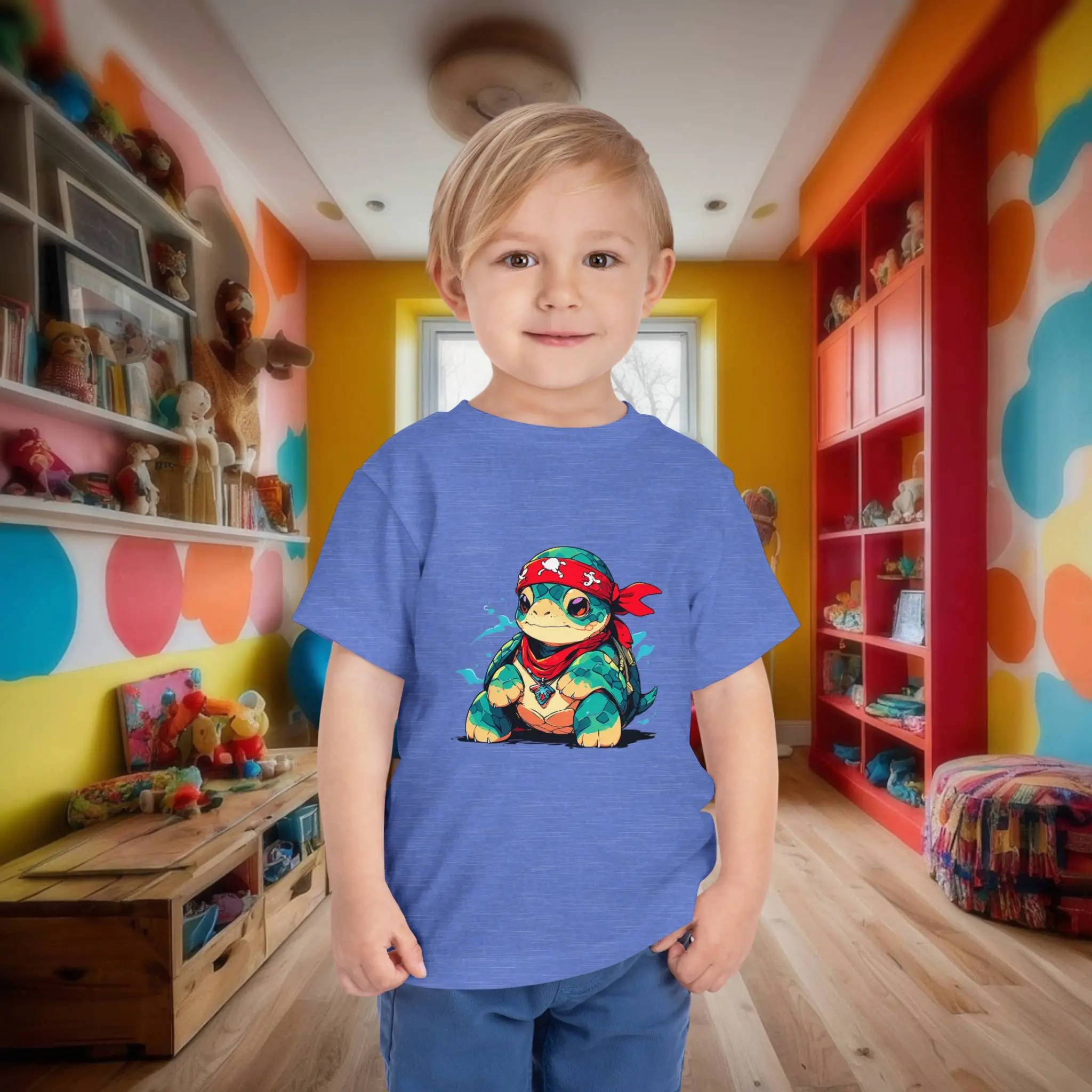 Ideal for a variety of occasions, the pirate turtle toddler tee is perfect for playdates, family outings, or casual wear at home. Its versatile design pairs easily with different outfits, making it a practical addition to any toddler’s wardrobe.