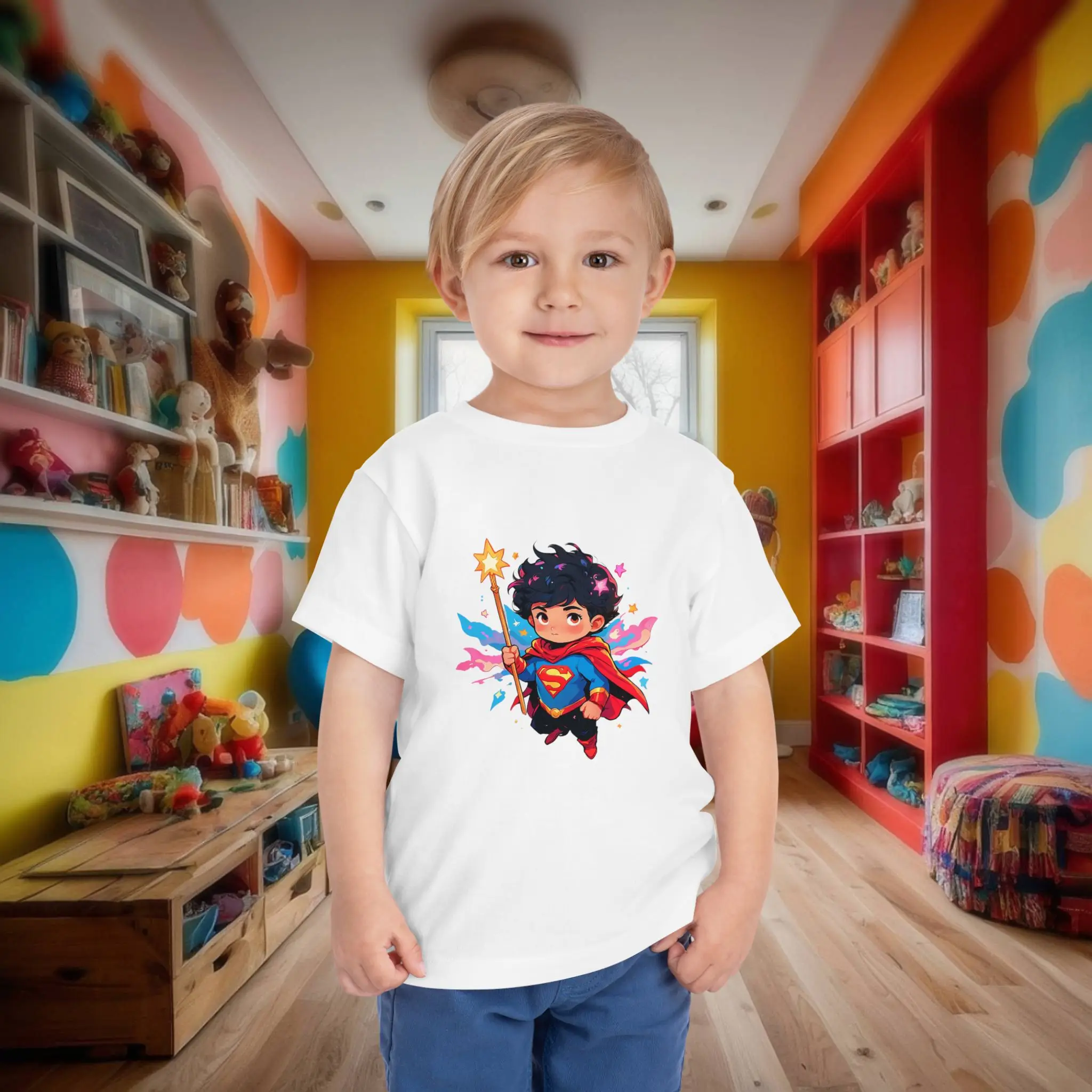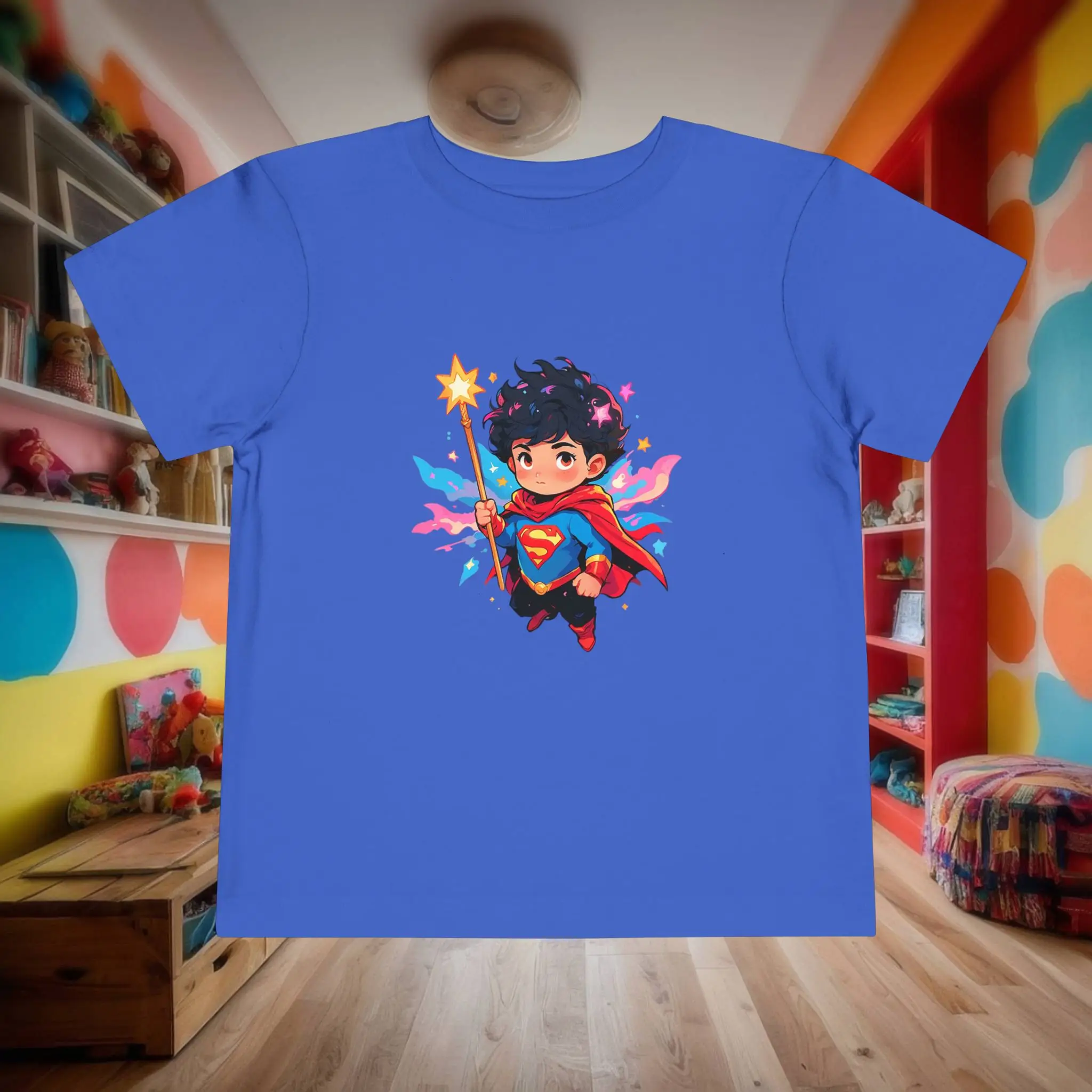 This Toddler Short Sleeve Tee features an endearing superhero graphic that adds a touch of fun and charm to your child’s outfit. The vibrant and playful design is sure to delight both kids and parents. High-quality printing ensures the graphic stays bright and intact through many washes.