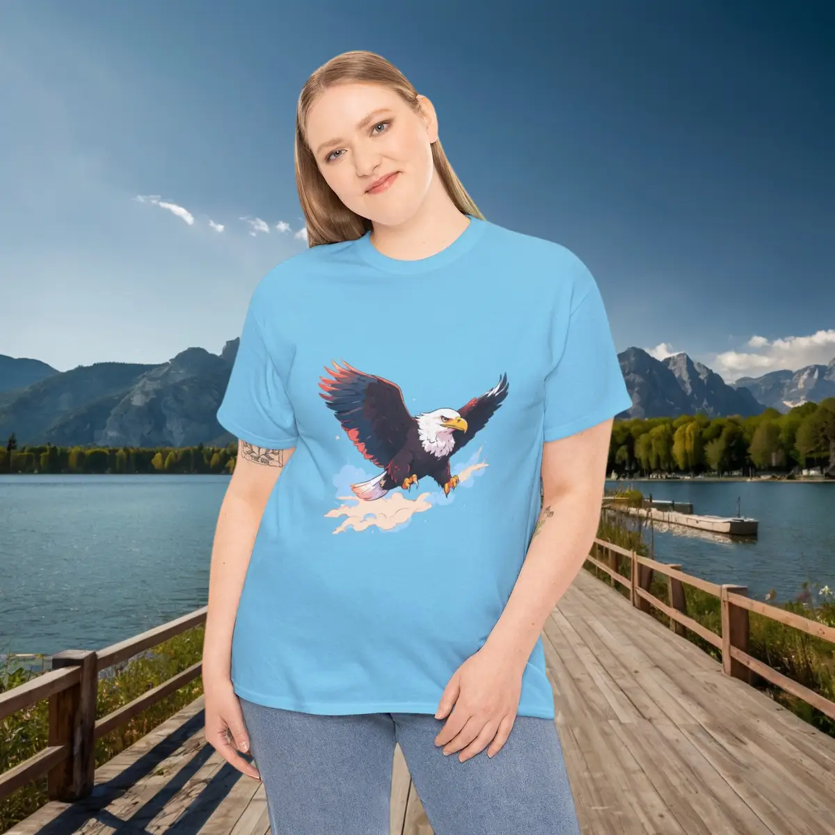 Celebrate the power and grace of one of nature’s most iconic creatures with this unisex heavy cotton tee. The striking eagle graphic, depicted in mid-flight, captures the majesty and freedom of the great outdoors. Perfect for those who appreciate nature and wildlife, this tee pairs effortlessly with jeans or shorts, making it a standout piece in any wardrobe.