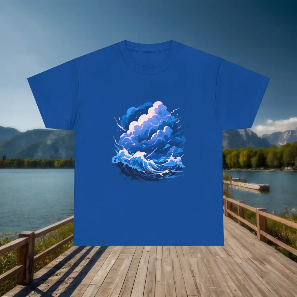 The Thunderstorm graphic is the highlight of this tee, featuring a dramatic scene of dark clouds swirling above turbulent waves. The vivid colors and intricate details bring the storm to life, evoking the intensity and beauty of nature in its most powerful form. Wearing this tee is like carrying a piece of the storm with you, a reminder of the majesty and unpredictability of the natural world.