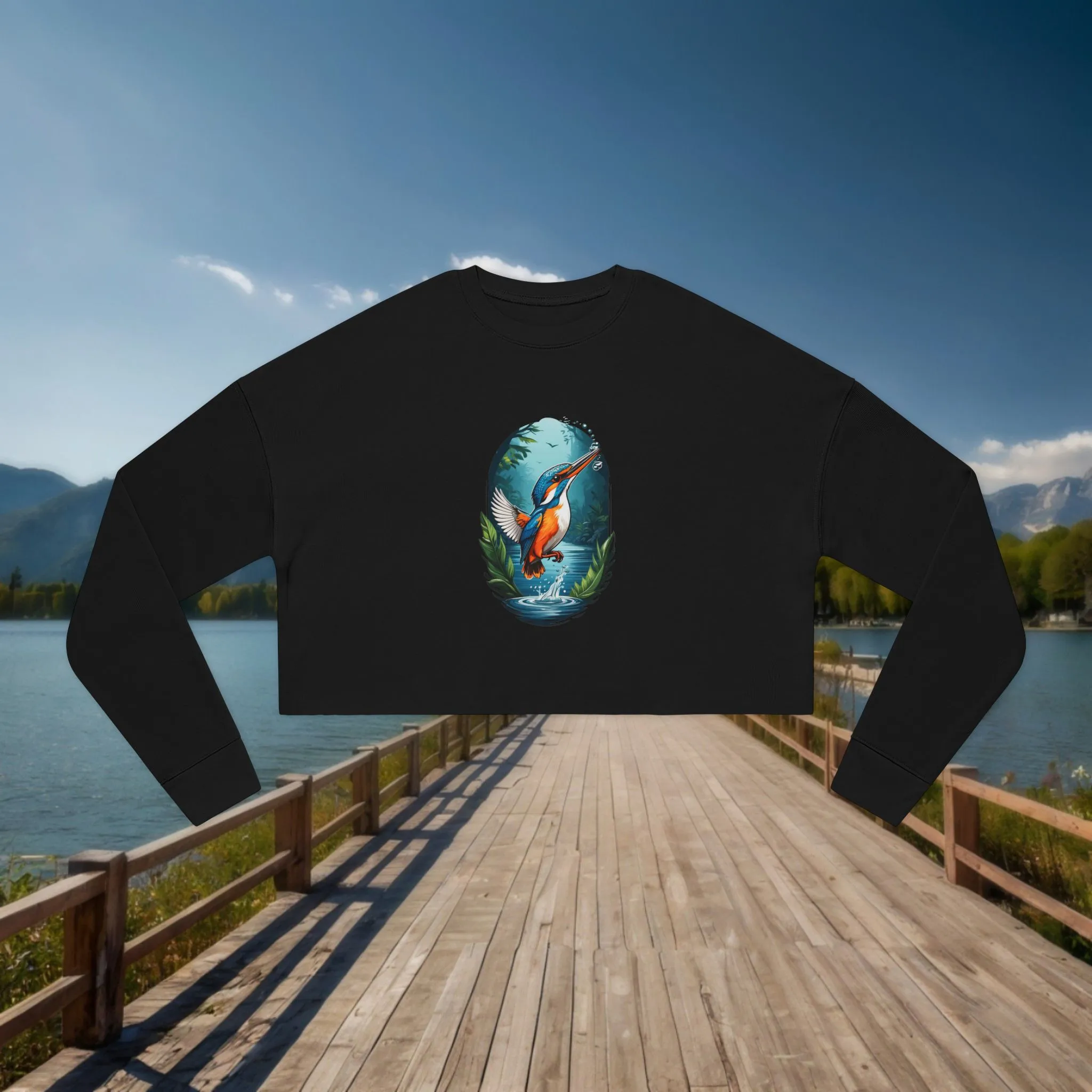 Women’s Cropped Sweatshirt with Kingfisher Design – Elegant and Unique