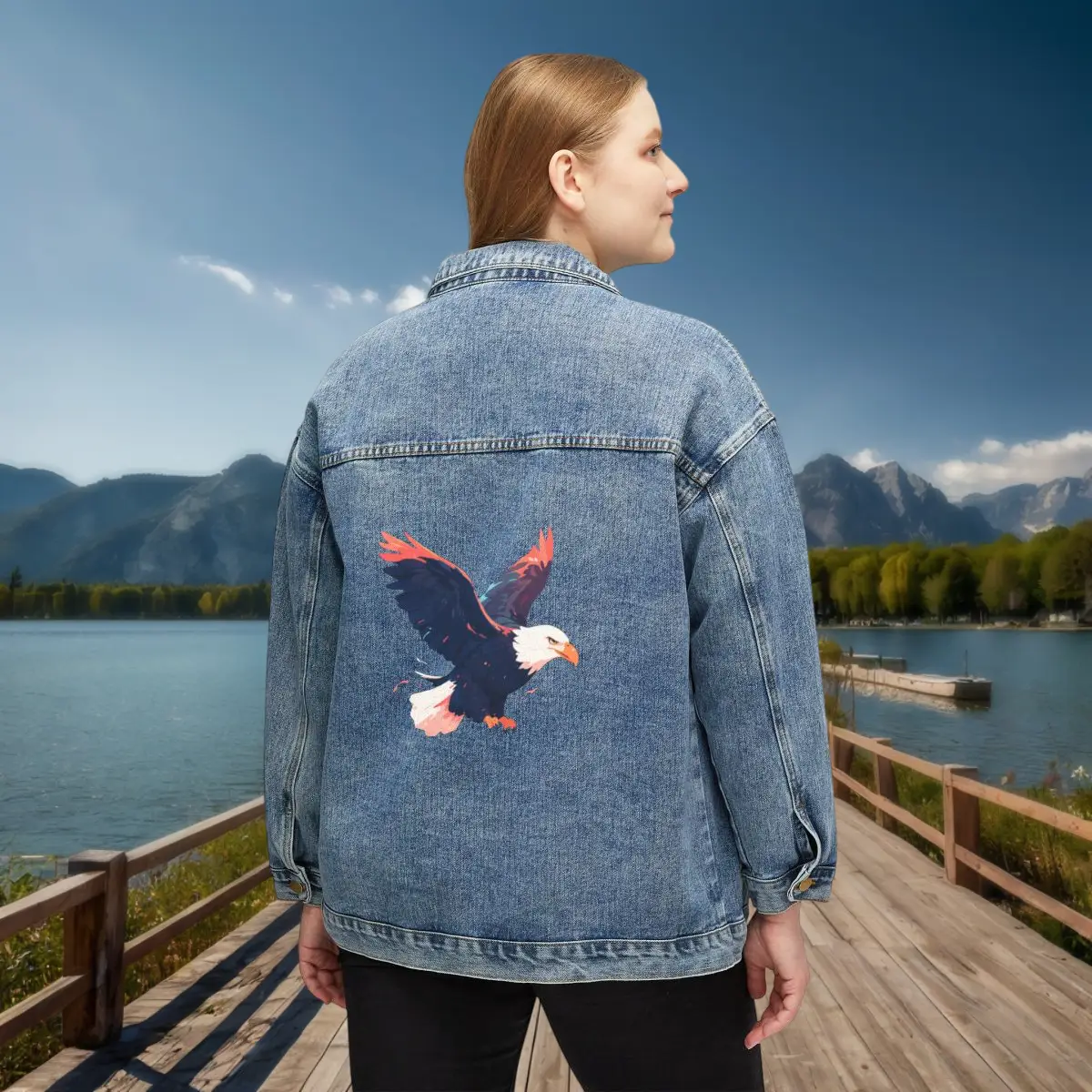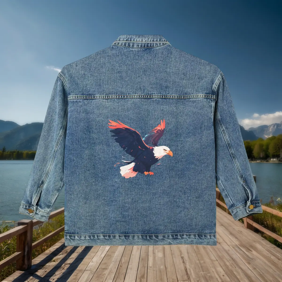 A standout feature of this Women’s Denim Jacket is the vibrant eagle design on the back. This artistic element adds a modern twist to the classic denim jacket, making it a distinctive piece that draws attention and compliments. The eagle design symbolizes freedom and strength, adding a unique and stylish touch to your wardrobe.