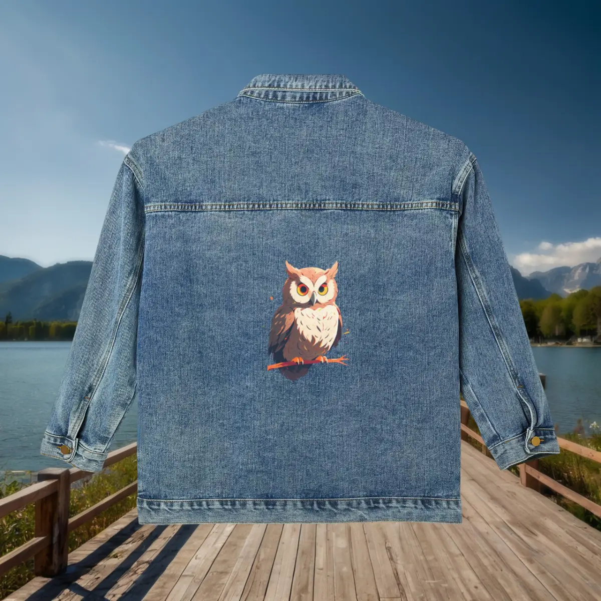 A standout feature of this Women’s Denim Jacket is the vibrant owl design on the back. This artistic element adds a modern twist to the classic denim jacket, making it a distinctive piece that draws attention and compliments. The owl design symbolizes wisdom and mystery, adding a unique and stylish touch to your wardrobe.