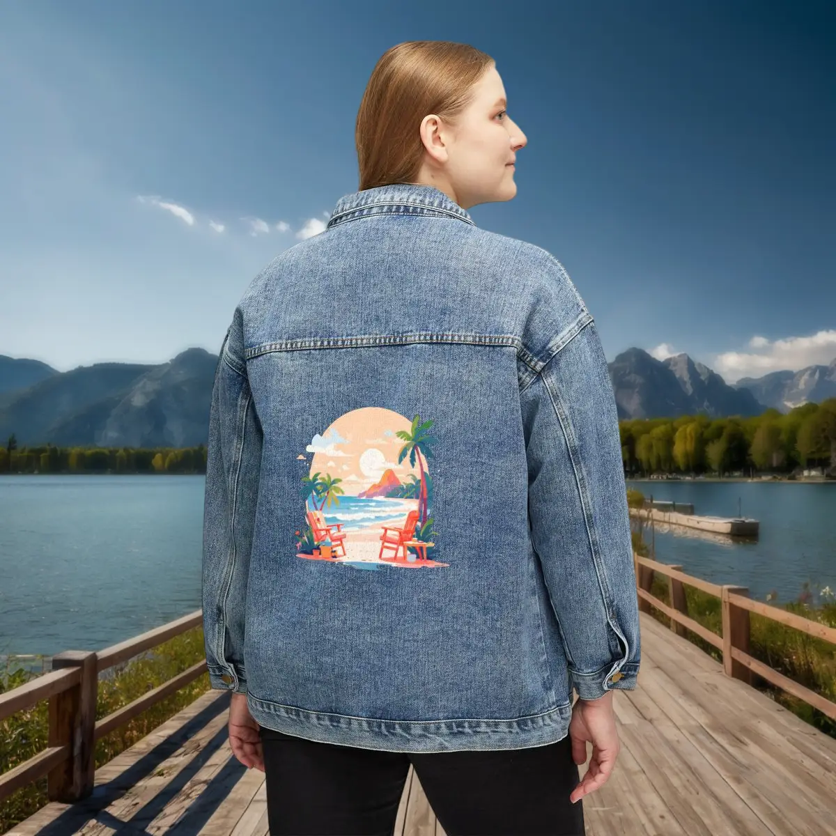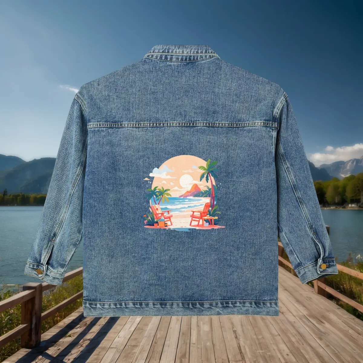 Step into a world of relaxation with the Women’s Denim Jacket from Exyashop, featuring a picturesque vacation graphic. This unique design captures the essence of a tropical getaway, making it perfect for those who love to carry a piece of paradise wherever they go.
